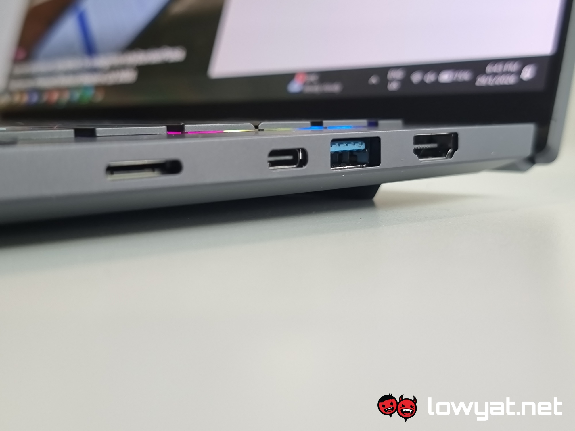 The chassis is mostly made from CNC aluminium, which allows the laptop to be incredibly light, weighing just 1.60 kg. While the laptop as a whole feels plenty sturdy, there is still some flex in the lid and keyboard if you intentionally apply pressure around its surface area.