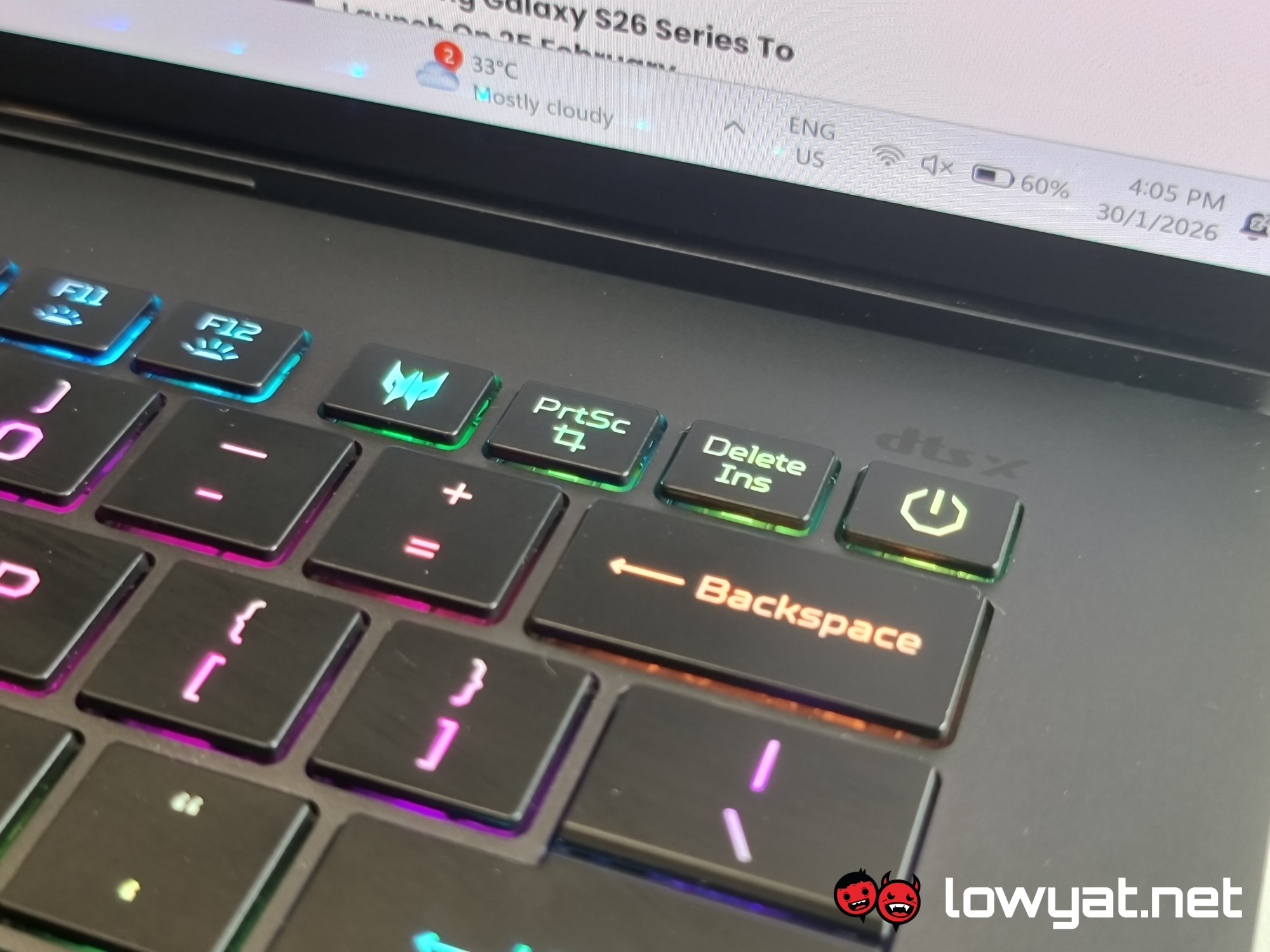 Naturally, being a Predator AI laptop, there are shortcut keys for PredatorSense and Microsoft Copilot. If I have any gripes with its layout, they are that the power button sits right above the Backspace key — resulting in me accidentally turning the PC off — and that the up and down arrow keys are too small for my liking.