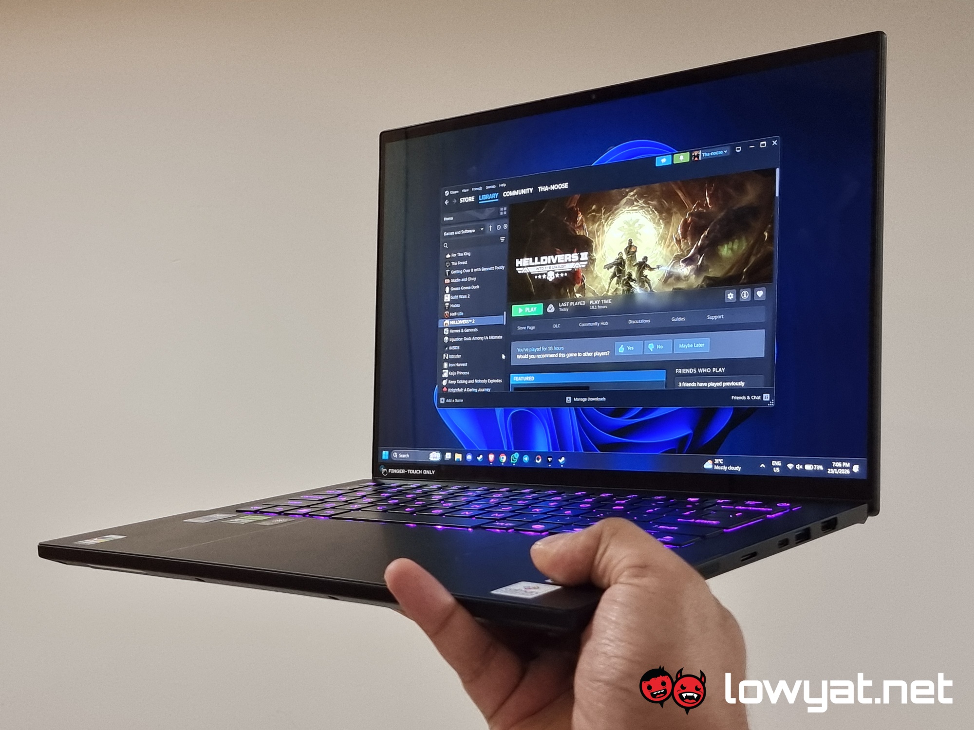 When I pivoted to games such as Helldivers 2, I was averaging around 60 fps. There were a few instances where the entire system would freeze and drop to 4 fps, but this issue lies with the game’s lack of optimisation rather than any failure of the laptop itself.