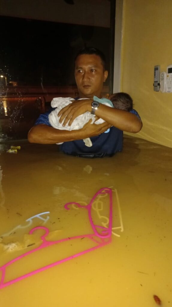 “Air naik terlalu cepat, tak sampai beberapa minit sudah tenggelam habis. Anak saya menangis tanpa henti kerana ketakutan,” katanya. – KOSMO! ONLINE