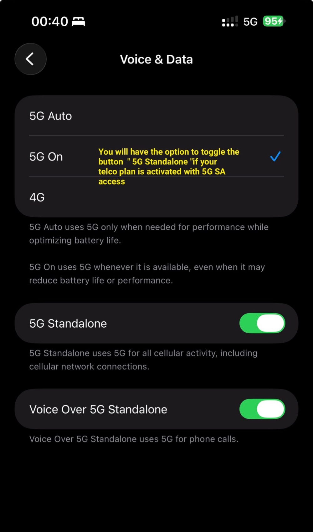 New 5G SA Controls In Settings