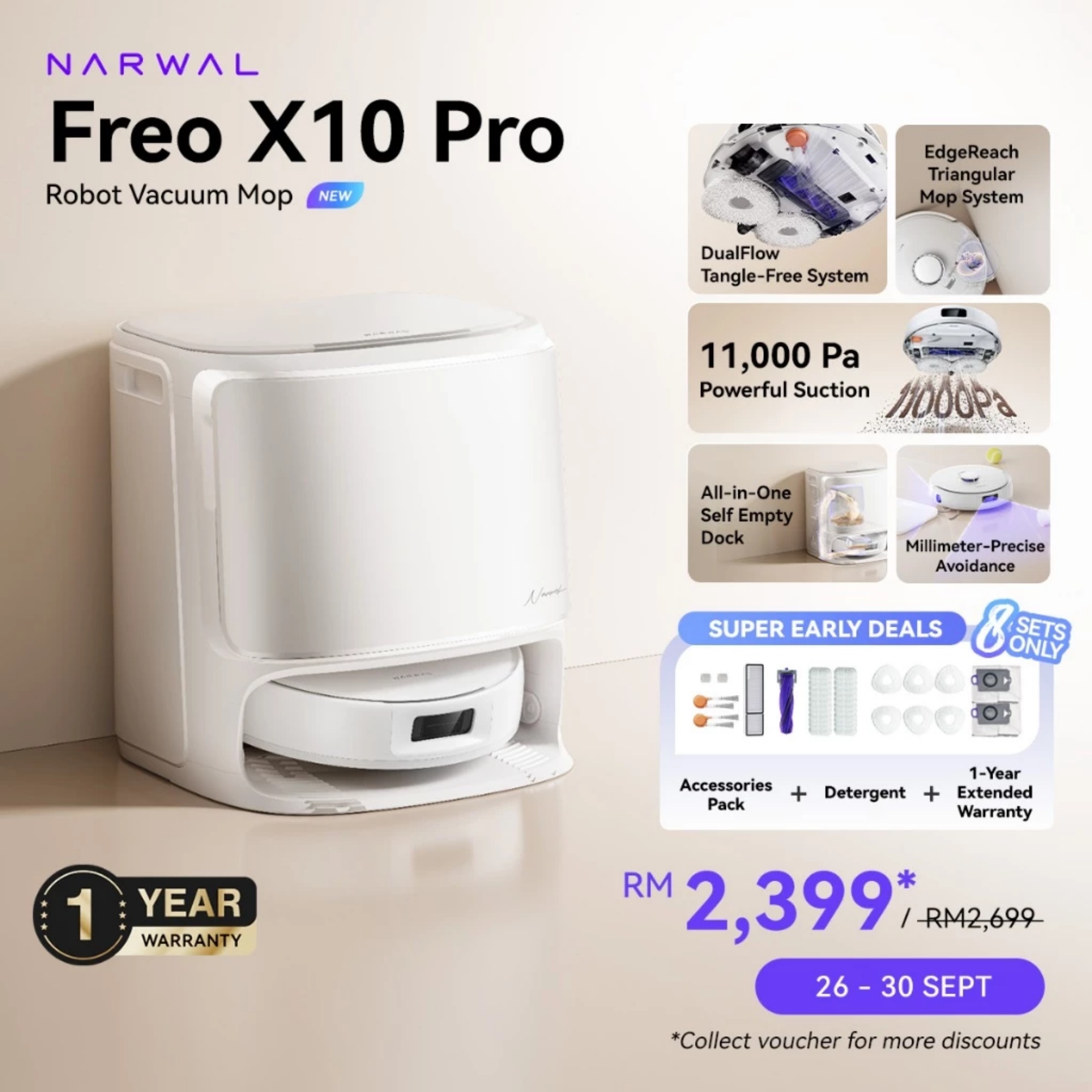 Similarly, those purchasing the Freo Flow can get it for RM5,099 and receive a gift bag. As for the Freo X10 Pro, early birds can get it for RM2,399, with a free gift bag and detergent. All three products acquired during the promotion period also come with one year extended warranty.
