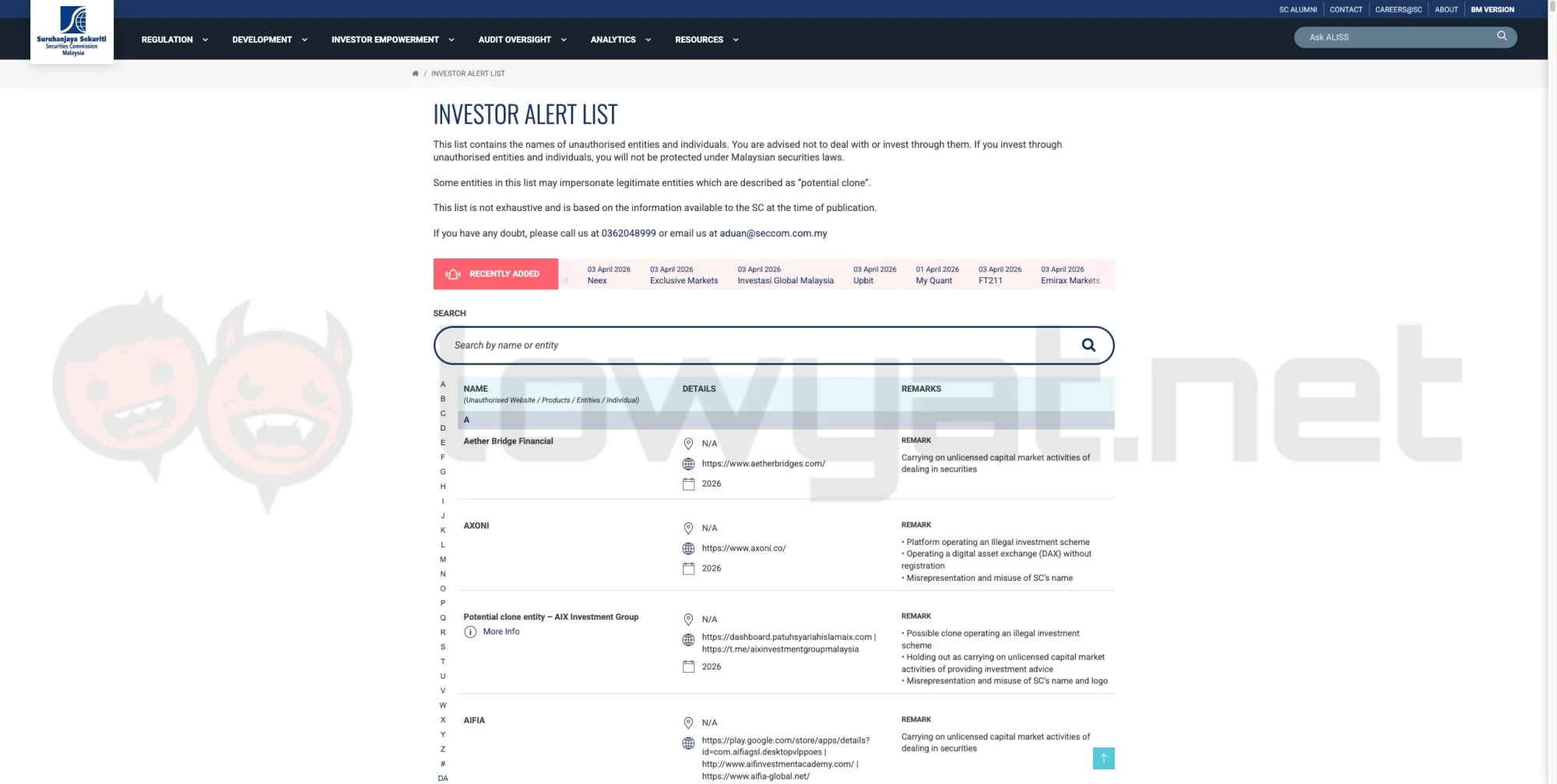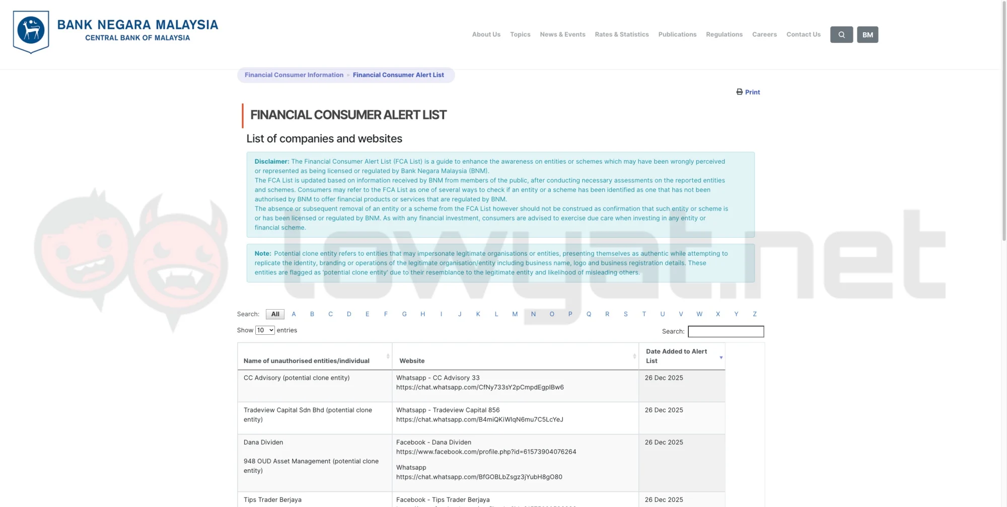 Members of the public are also encouraged to verify investment opportunities through official channels such as the SC Investor Alert List and Bank Negara Malaysiaβs Financial Consumer Alert.