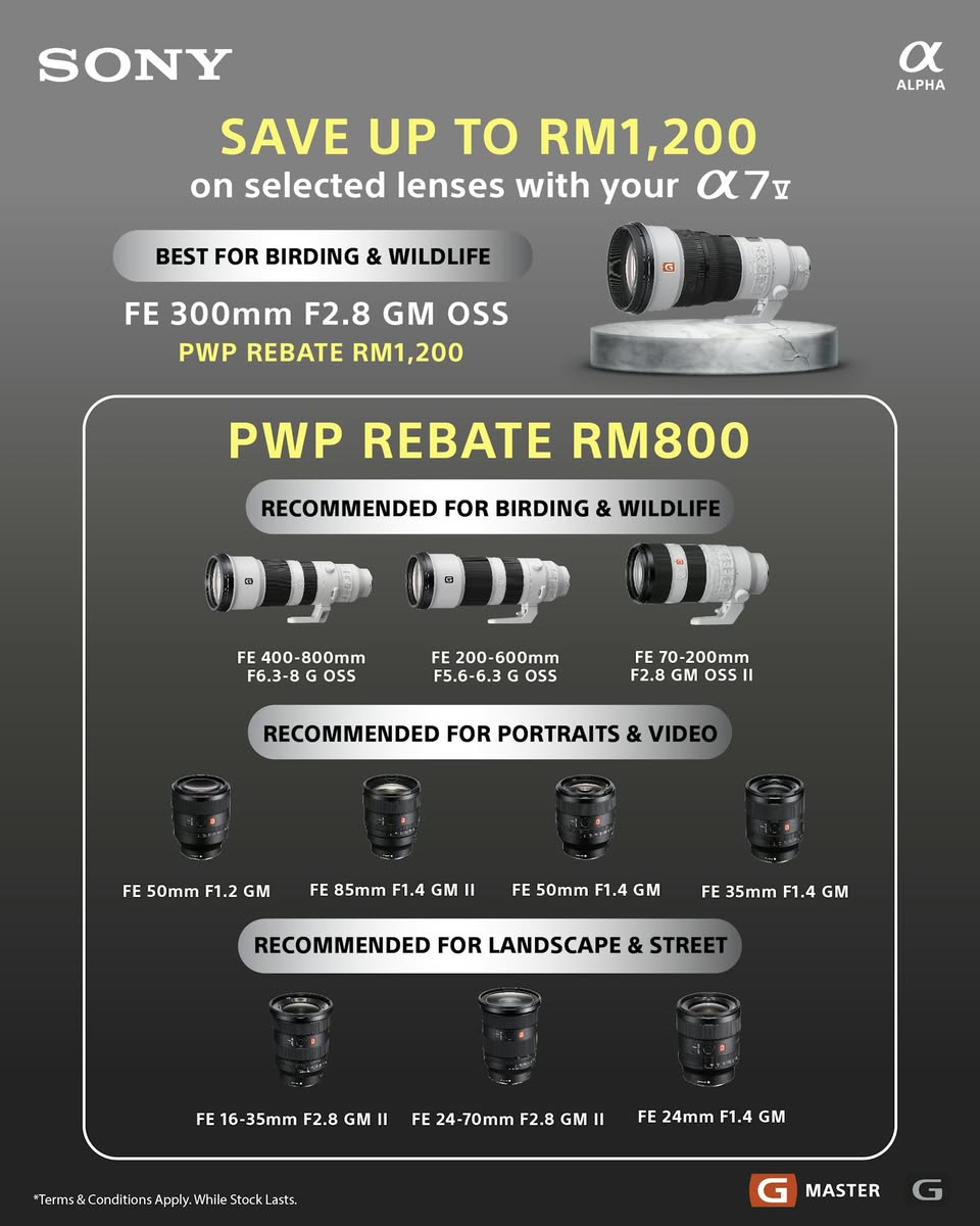 Pre-orders for the Alpha 7 V are now open through Sony’s website, as well as its experience stores and authorised distributors across Malaysia. Sony is also offering a rebate of RM1,200 for the FE 300mm F2.8 GM OSS and RM800 for selected lenses when you place a booking.