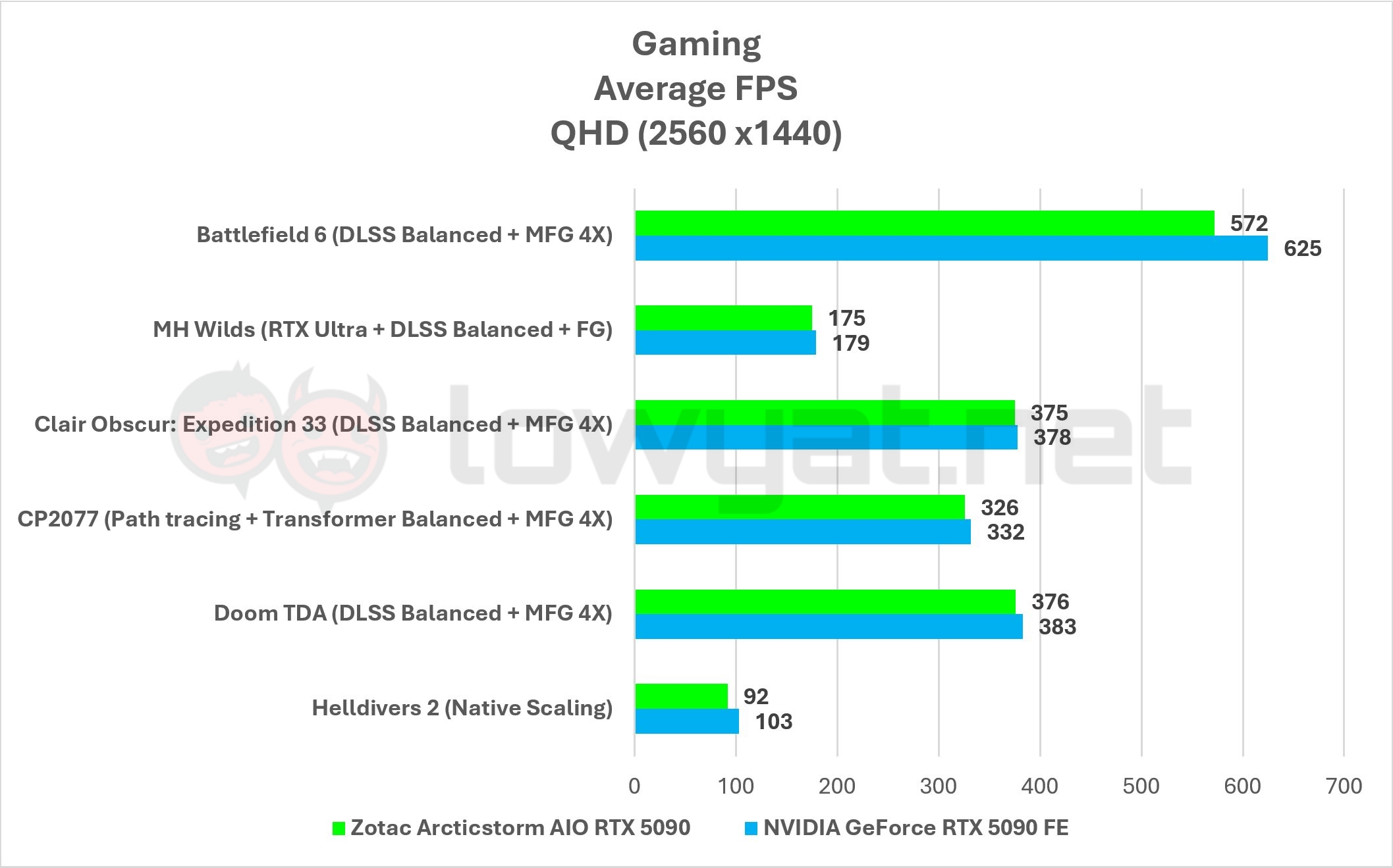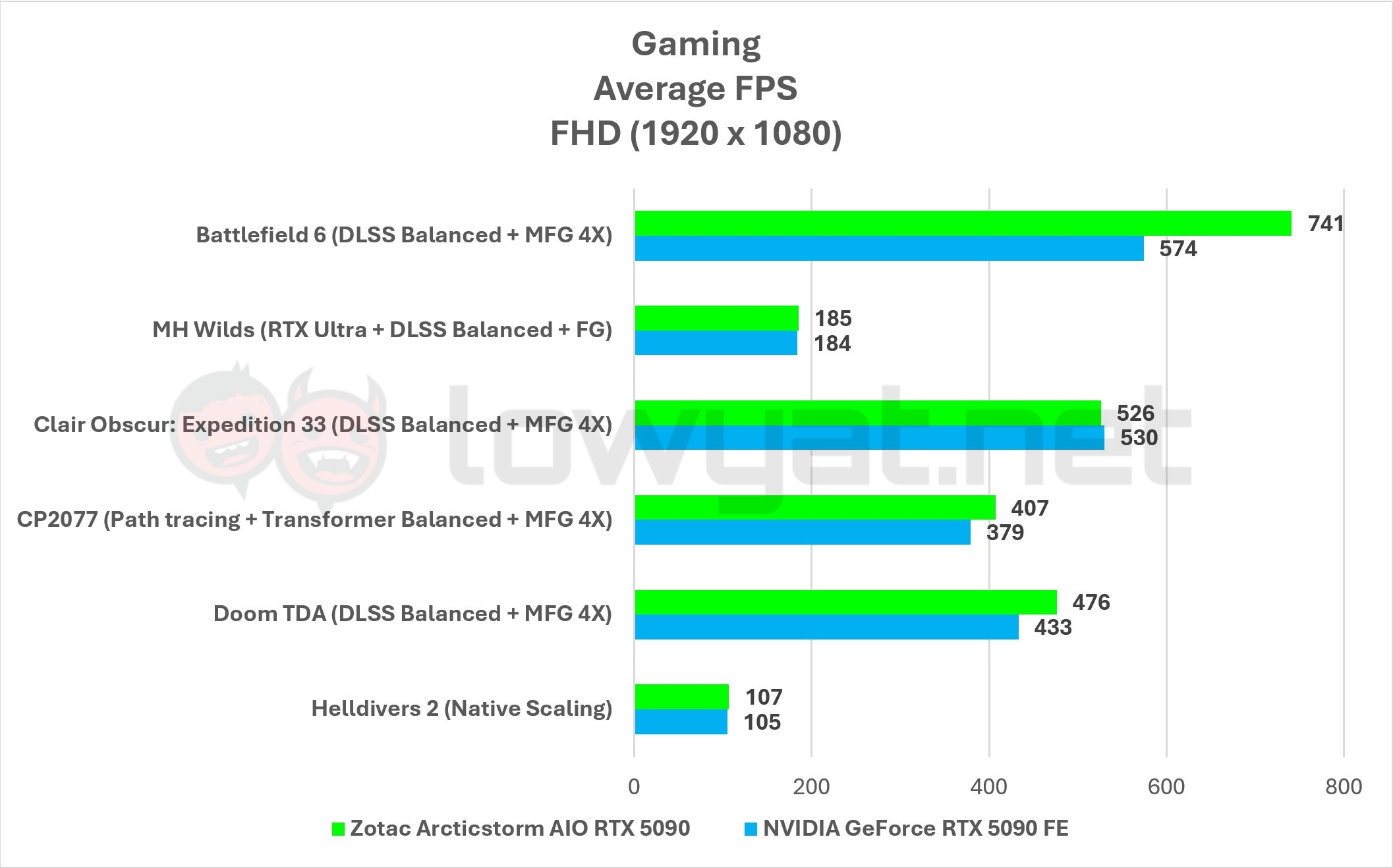At the bare minimum, all my control titles run at more than 100 fps across the board, but again, there is an inconsistency in the framerates compared to the RTX 5090 FE. Take Battlefield 6 as an example: with DLSS and MFG turned on, there’s just no lack of frames that you can use the excuse “my framerate isn’t high”. Yet, at 4K QHD resolution, the card trails behind the RTX 5090 FE ever so slightly for a handful of titles.