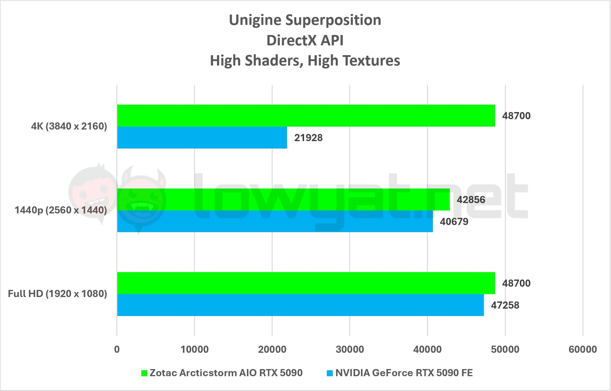 Synthetically, this card is still an RTX 5090, but as it has been given that extra layer of love through liquid cooling, the card can slightly outpace the RTX 5090 FE, albeit by a just a small margin. 3Dmark’s Solar Bay test, in particular, is the only test in which the card really pulls ahead of the FE, by approximately 10%.